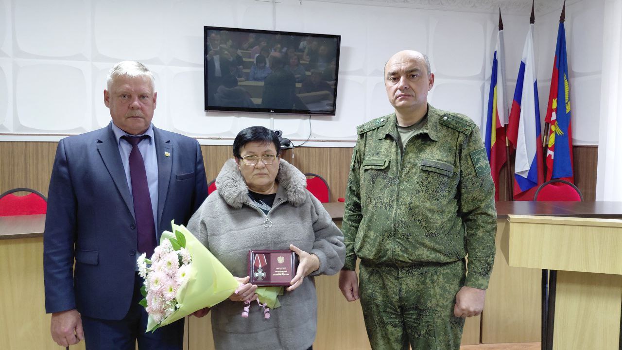 Высокую правительственную награду вдове участника спецоперации вручил военный комиссар Зимовниковского, Дубовского, Заветинского и Ремонтненского районов Ростовской области Максим Фенев.