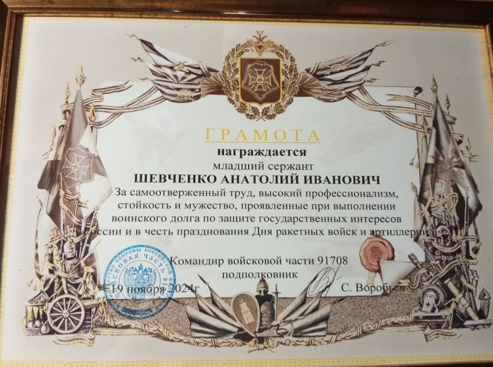 Служил в звании младшего сержанта, в должности старшего наводчика. За время СВО награжден: