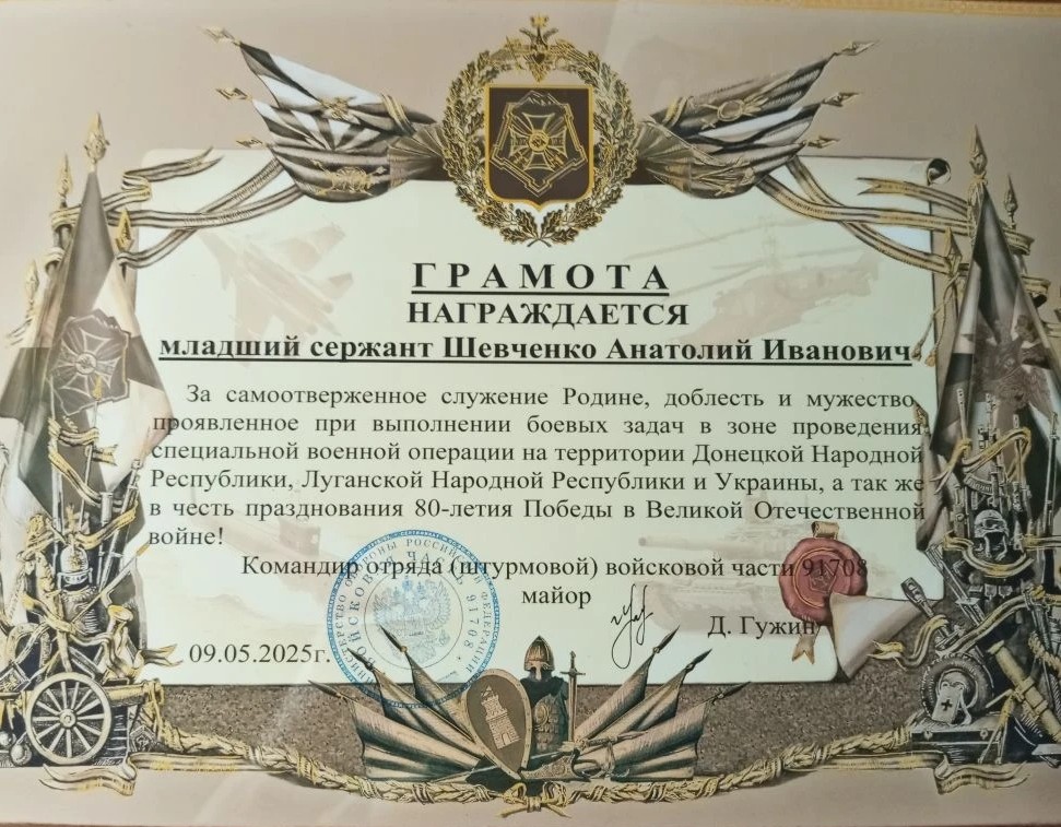 26 декабря в с. Тюльпаны простились с Анатолием Ивановичем Шевченко 1998 года рождения, отдавшим свою жизнь в ходе специальной военной операции.