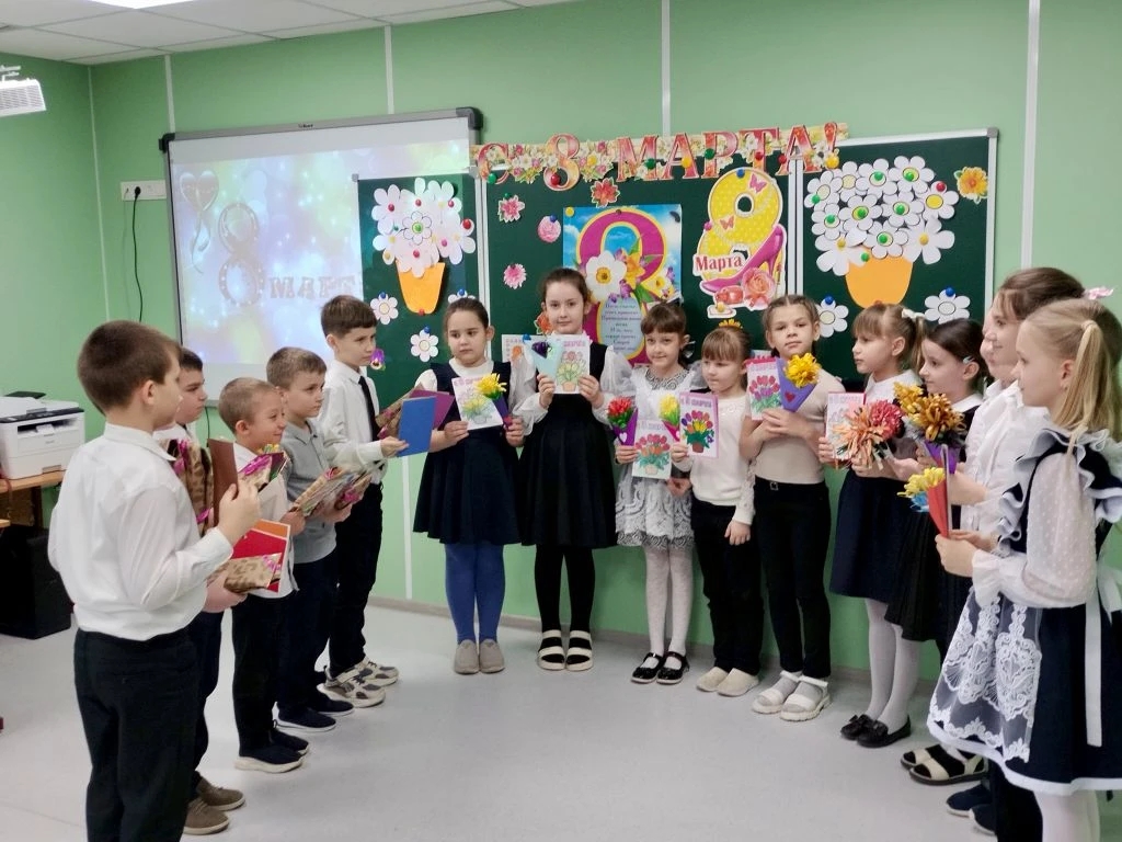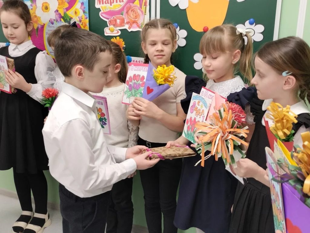 Внеклассное мероприятие, приуроченное к 8 Марта, получилось насыщенным и запоминающимся. Сначала школьники узнали увлекательные факты из истории возникновения праздника — это помогло им глубже прочувствовать его значение. Затем наступила самая душевная часть: мальчики от всего сердца поздравили одноклассниц, рассказали красивые стихи и вручили девочкам открытки.