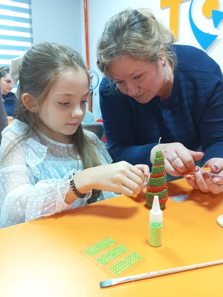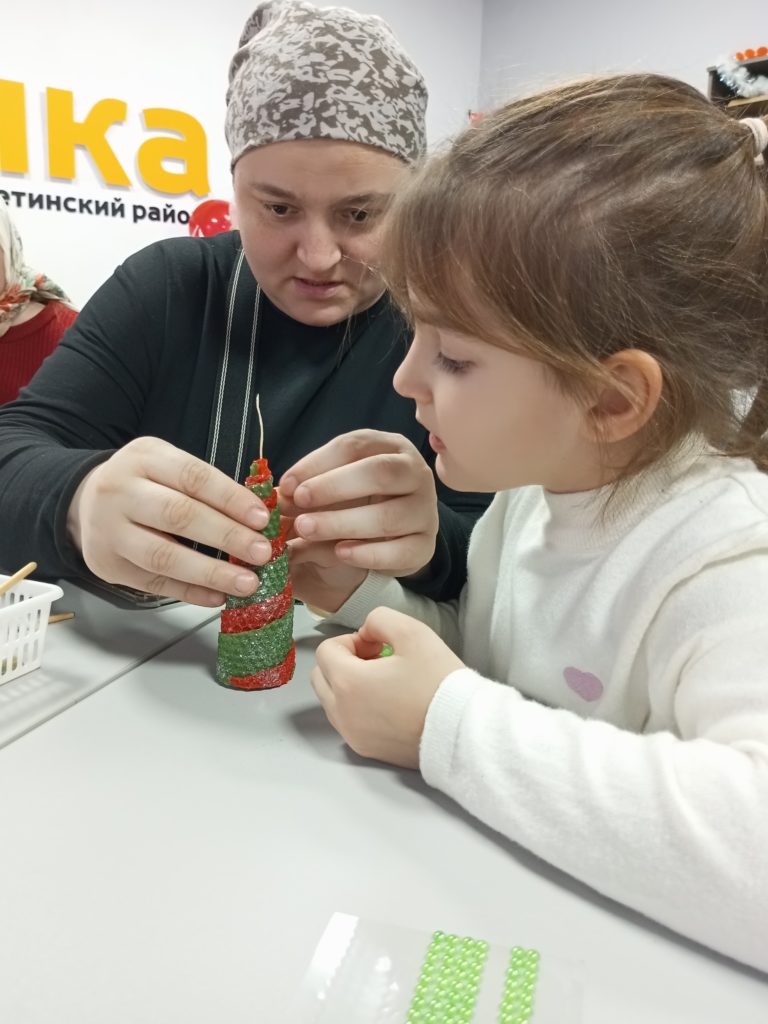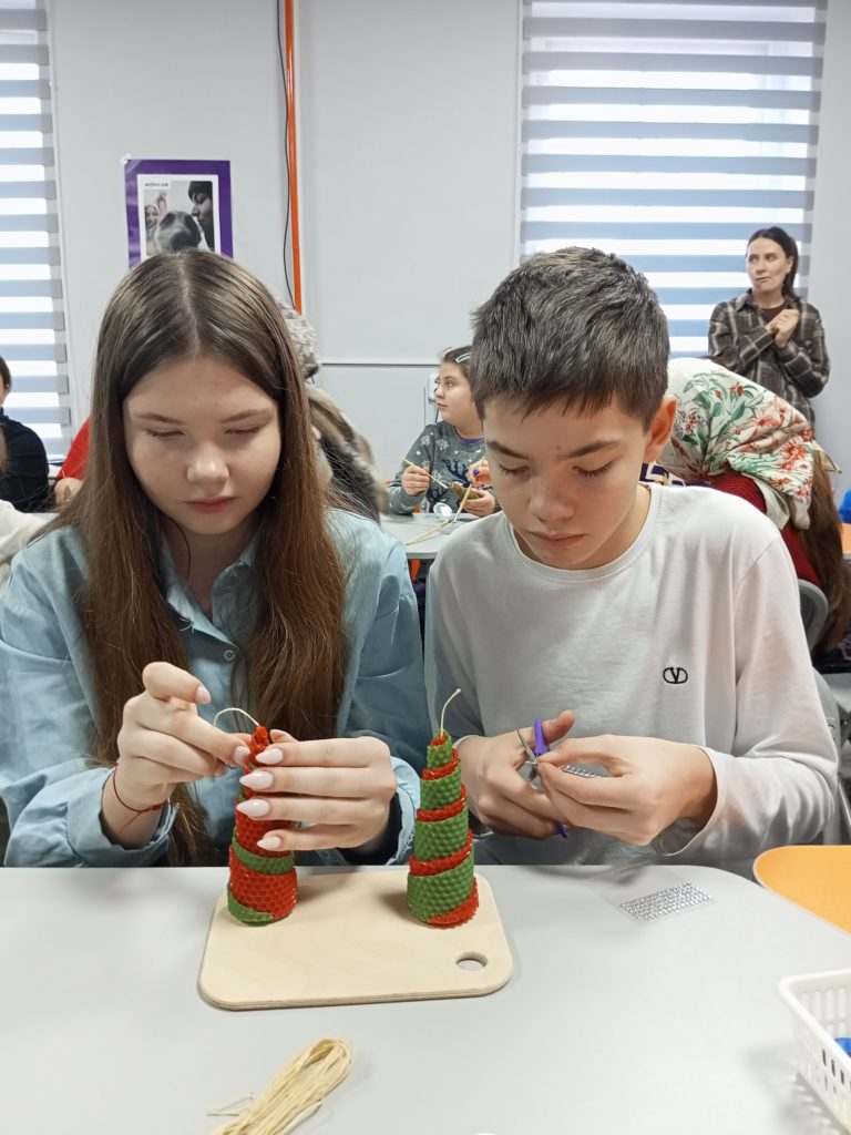 В рамках акции проведен мастер‑класс по изготовлению свечей из вощины. Дети вместе с родителями с увлечением создавали свечи в форме елочек – теплое и творческое занятие добавило празднику особого уюта и душевности.