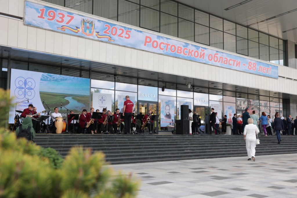 С праздником жителей Донской земли поздравил и полномочный представитель Президента Российской Федерации в ЮФО Владимир Устинов. Со словами приветствия обратились спикер Заксобрания области Александр Ищенко, глава Донской митрополии Меркурий.