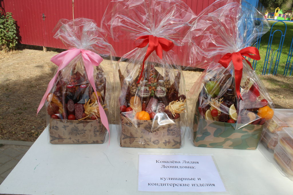 Праздничное мероприятие началось с выставки-конкурса «Заветный приз», на котором были представлены кондитерские изделия, работы рукодельниц, выставка рисунков, поделок Заветинской ДШИ, Заветинского ЦВР, Заветинской школ № 1 и №2.