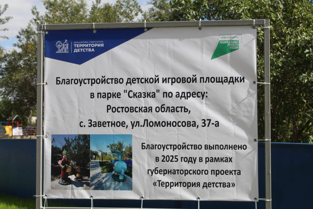 Со словами поздравлений обратились Юрий Величко, глава администрации Заветинского района, Сергей Бондаренко, глава администрации Заветинского сельского поселения. Парк обновлен благодаря губернаторской программе «Территория Детства», которая инициирована губернатором Ростовской области Юрием Слюсарем.