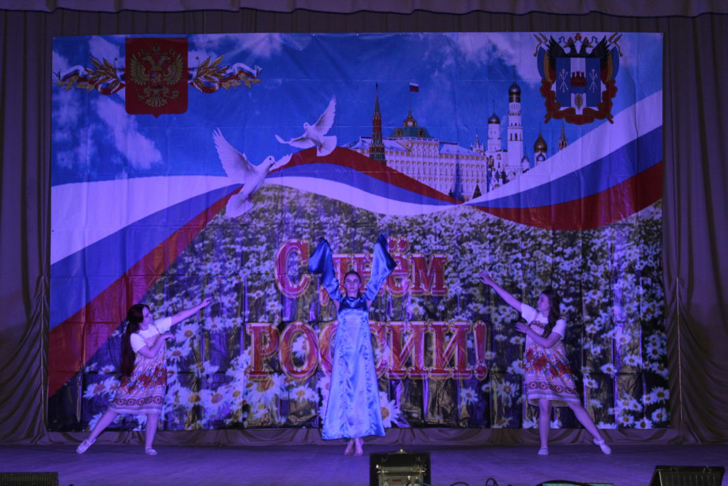 Затем зрители смогли насладиться фестивалем, на котором артисты, творческие, танцевальные коллективы домов культуры Заветинского района исполнили военно-патриотические номера, а также исполнили песни о России.