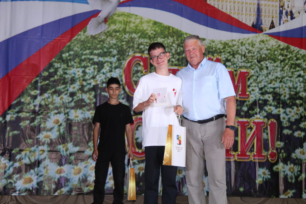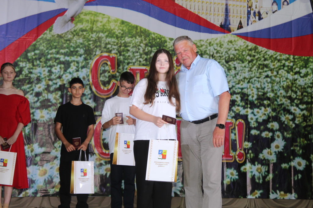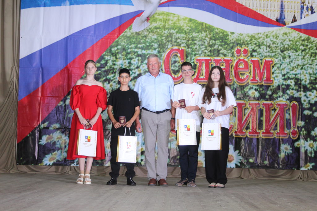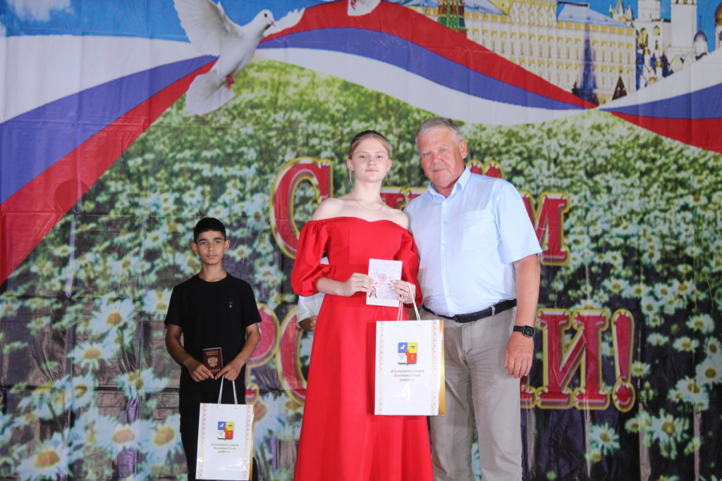 С праздником жителей и гостей мероприятия поздравил Юрий Величко, глава администрации Заветинского района. По доброй традиции он вручил молодым гражданам Тимуру Зайцеву, Антону Линченко, Марие Щербаковой, Милане Идаевой важный документ — паспорт гражданина Российской Федерации.